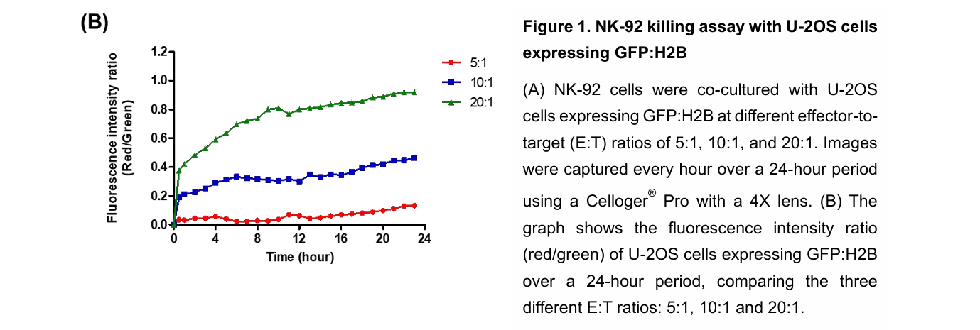 Figure 2. NK-92 killing assay with U-2OS cells stained with live cell staining dyes