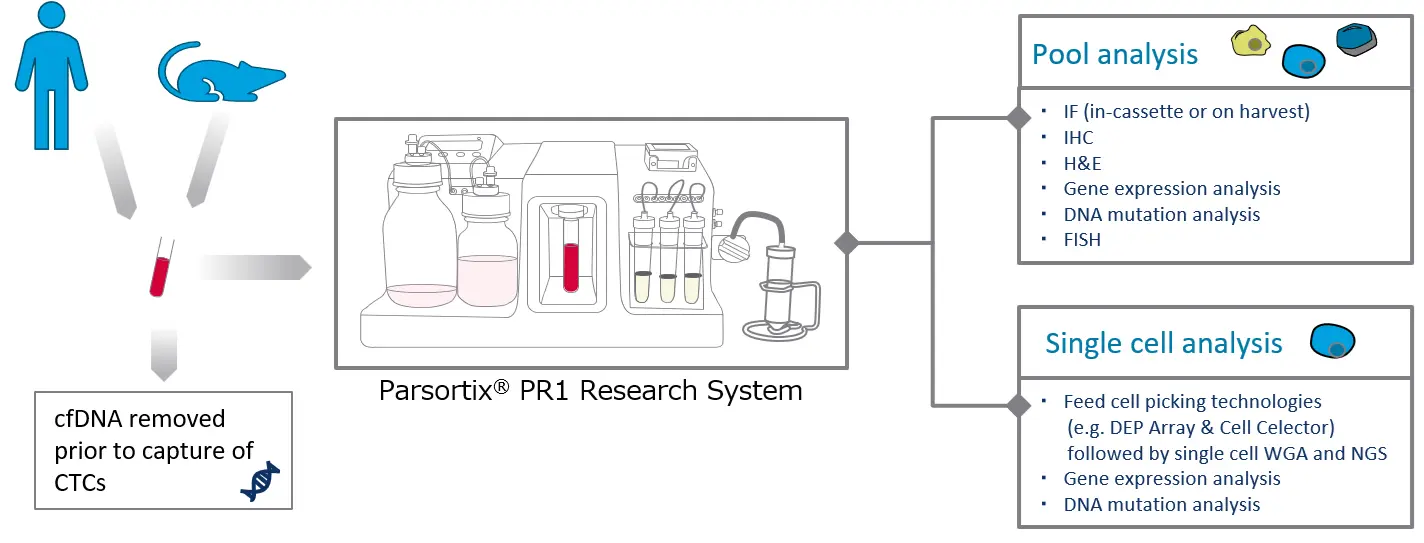 The Parsortix® PR1 Research System is designed to prioritize flexibility in downstream analysis following CTC recovery.