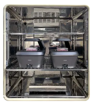Celloger® Mini Plus does not use a moveable stage. Instead, the internal camera moves to capture images at multiple positions. Because the vessel and cell samples remain stationary, the system maintains a stable environment that supports consistent cell growth.