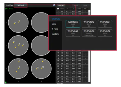 Using a motorized camera that travels 117 mm (X-axis) and 77 mm (Y-axis), multiple points within the travel range can be captured according to a user-defined schedule (intervals, cycles, and total time).