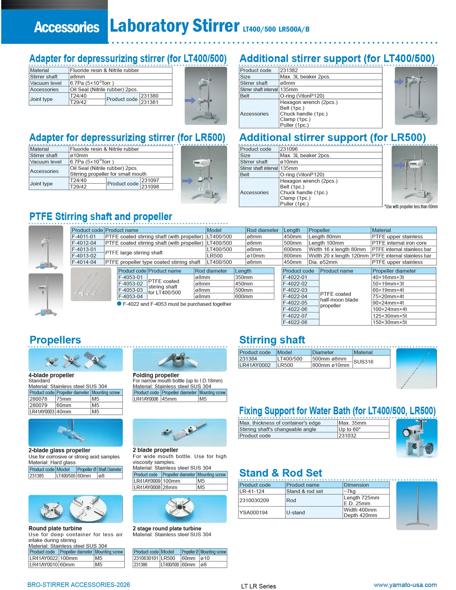 LT Series stirrers include LT400A and LT500A with higher torque, LT400B and LT500B with well-balanced speed and torque, and LT400C with high speed, to support different applications.