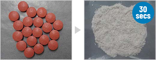 Pulverize film coated tablets in 30 seconds or less.